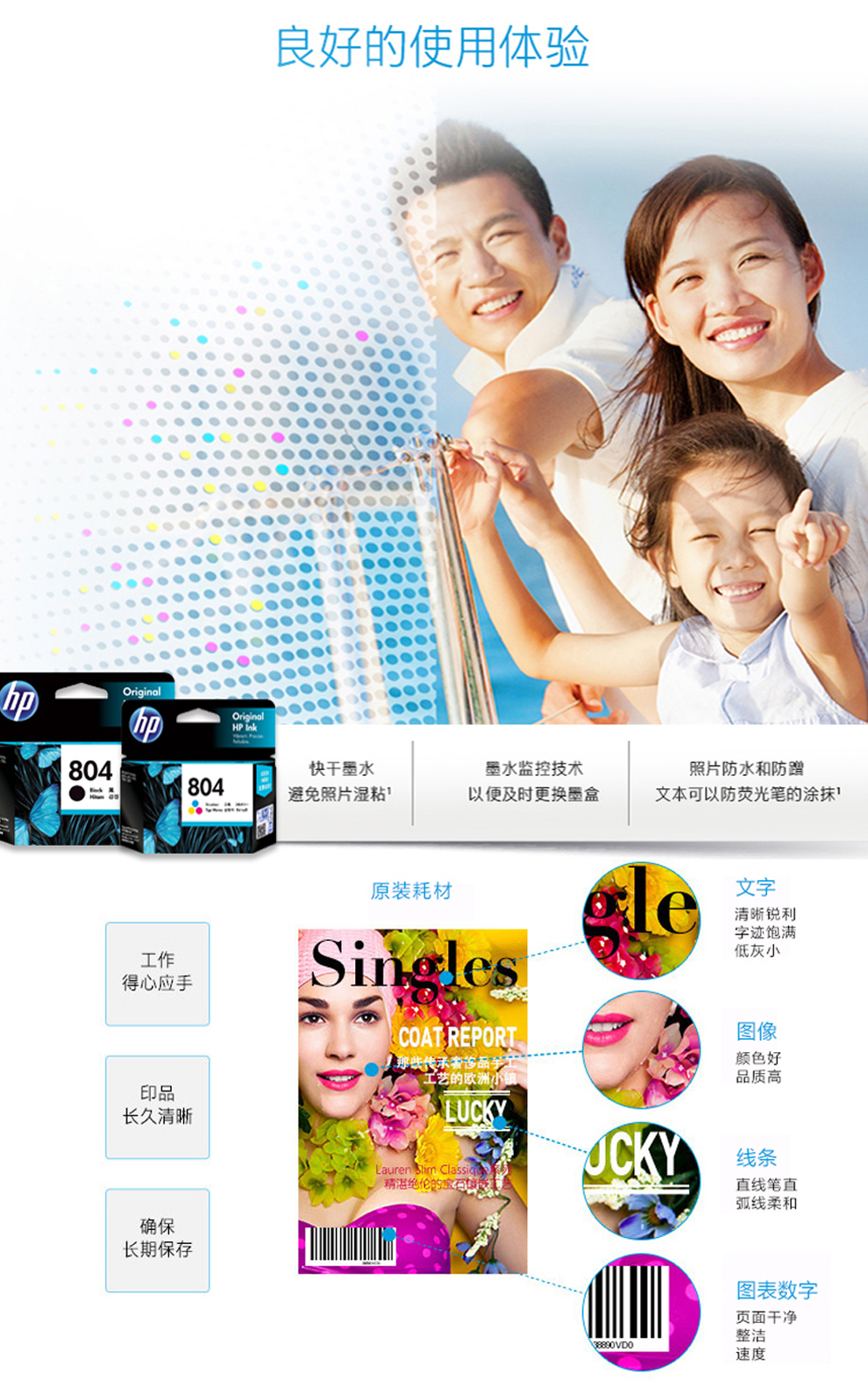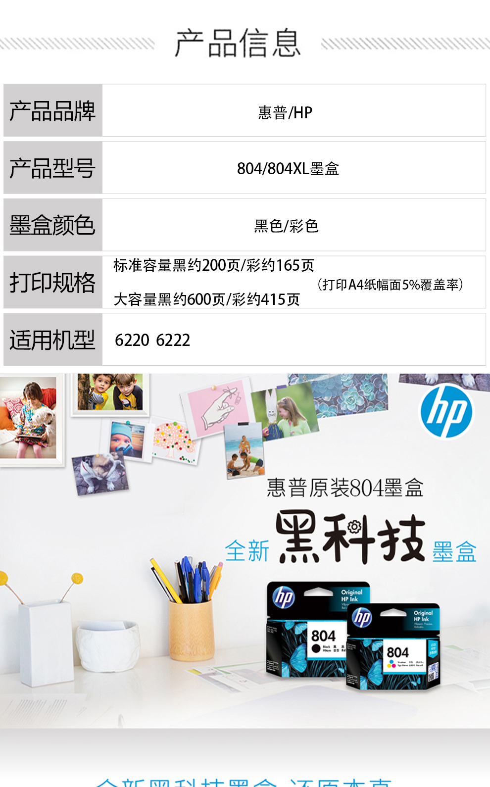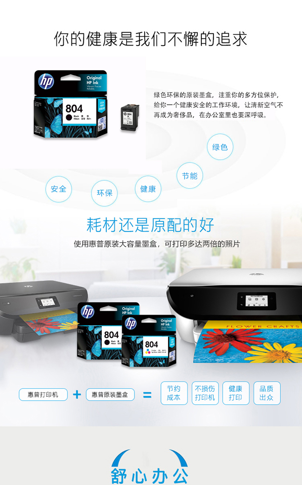 惠普(HP) 804墨盒原装适用 6220 6222 7120 7820 Tango X打印机 804XL彩色大容量墨盒(约415页)