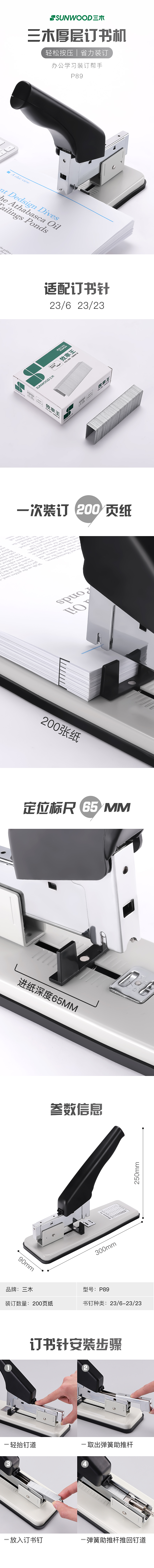 三木(SUNWOOD) 效率王系列 200页金属厚层省力订书机 适配23/6-23/23订书钉P89