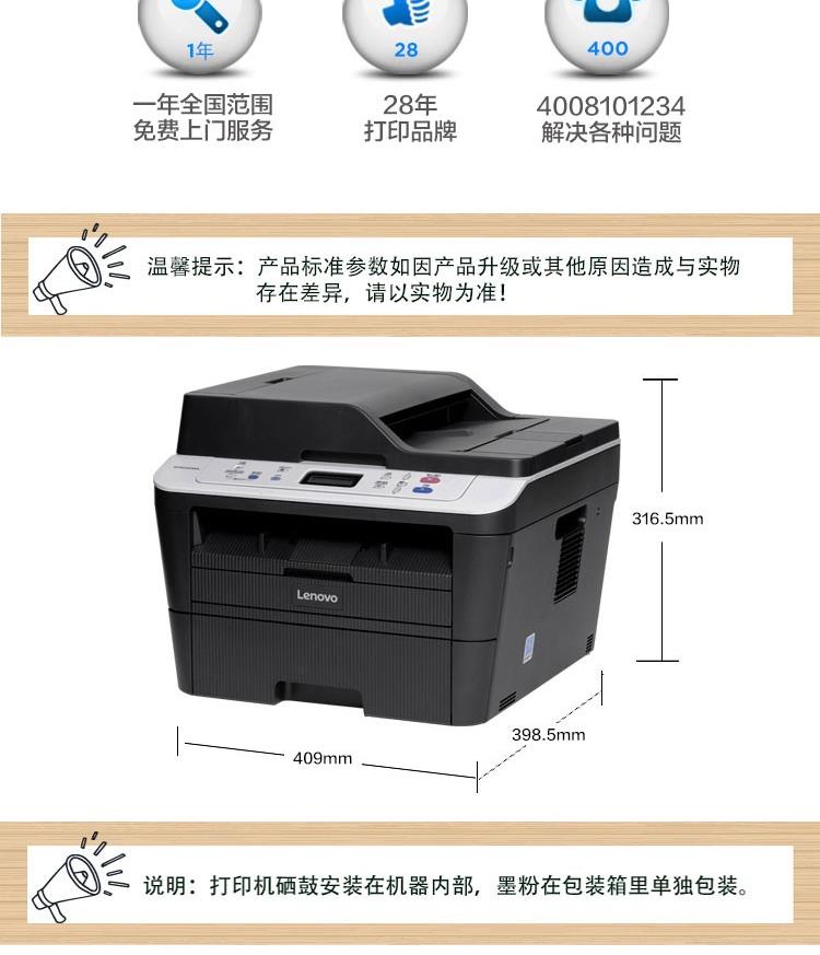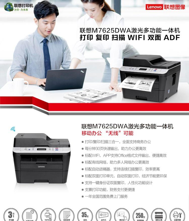 联想(Lenovo) M7625DWA黑白激光无线WiFi打印多功能一体机 商用办公 自动双面打印 (打印 复印 扫描)