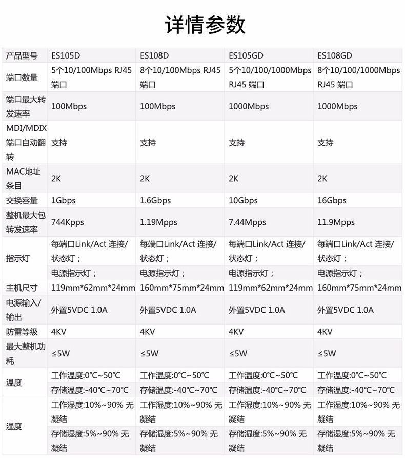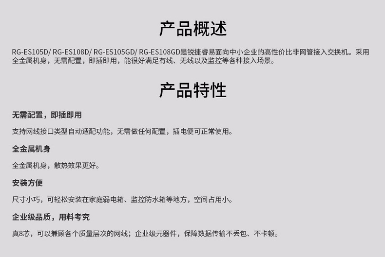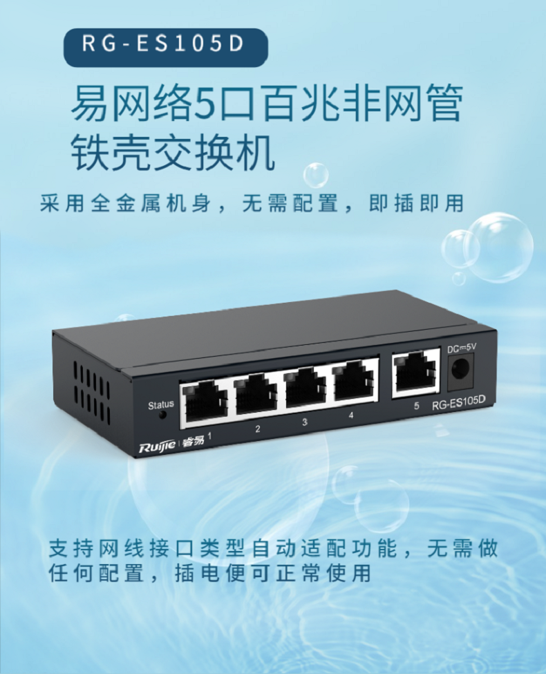 锐捷(RUIJIE) RG-ES105GD 5口千兆交换机 铁壳非网管企业级交换器