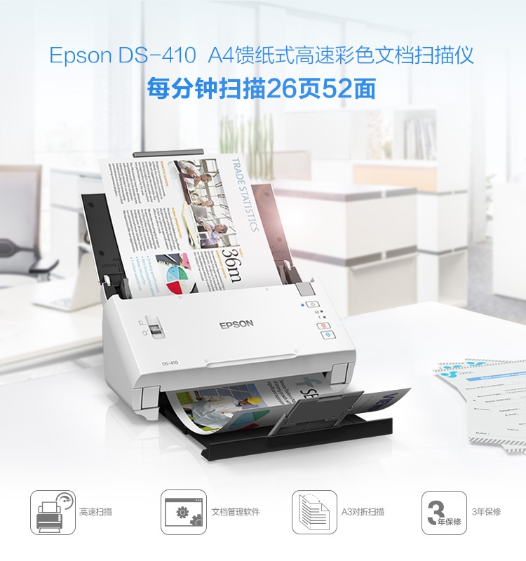 爱普生(EPSON) DS-410 A4馈纸式 高速彩色文档扫描仪 自动进纸