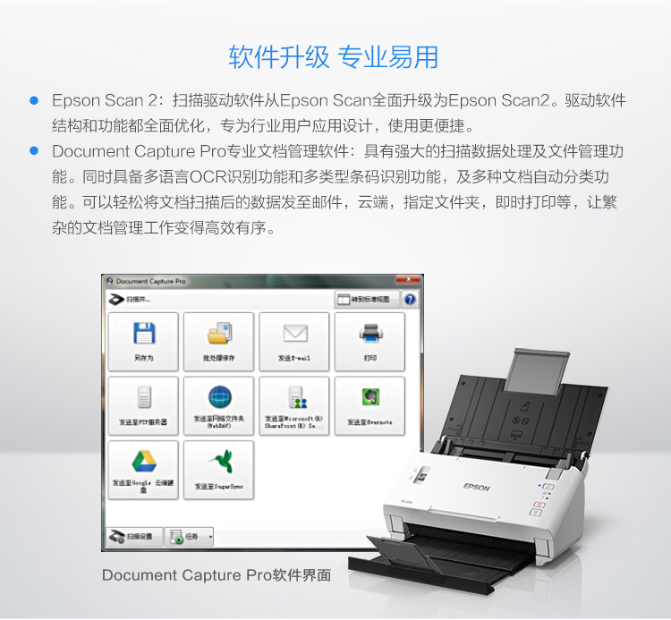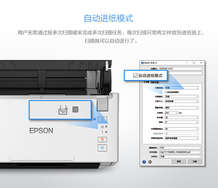 爱普生(EPSON) DS-410 A4馈纸式 高速彩色文档扫描仪 自动进纸