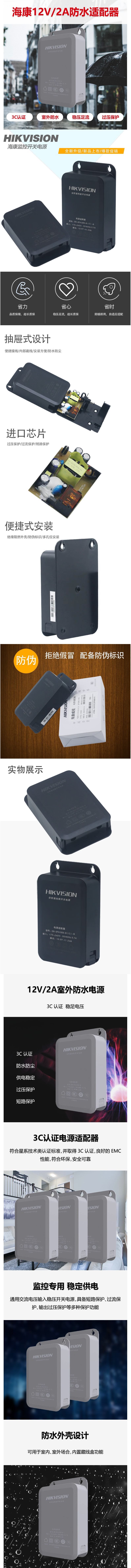 海康威视(HIKVISION) DC12V 室外防水电源室内安装电源直流供电防水电源