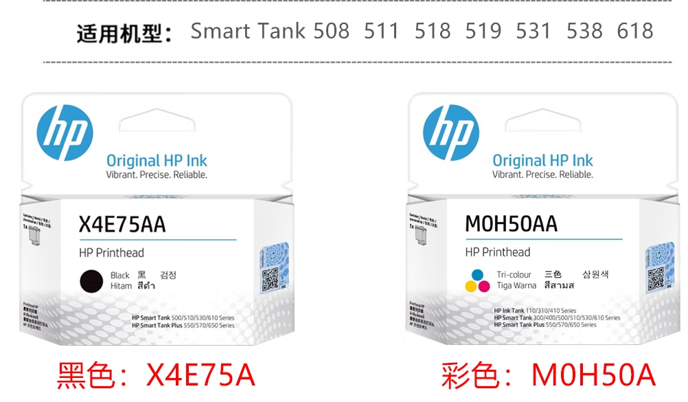 惠普(HP) GT53XL 52墨水原装511 518 519 538 618 510 531 516 (黑色+彩色)连供打印头/喷头/墨盒(组合装)