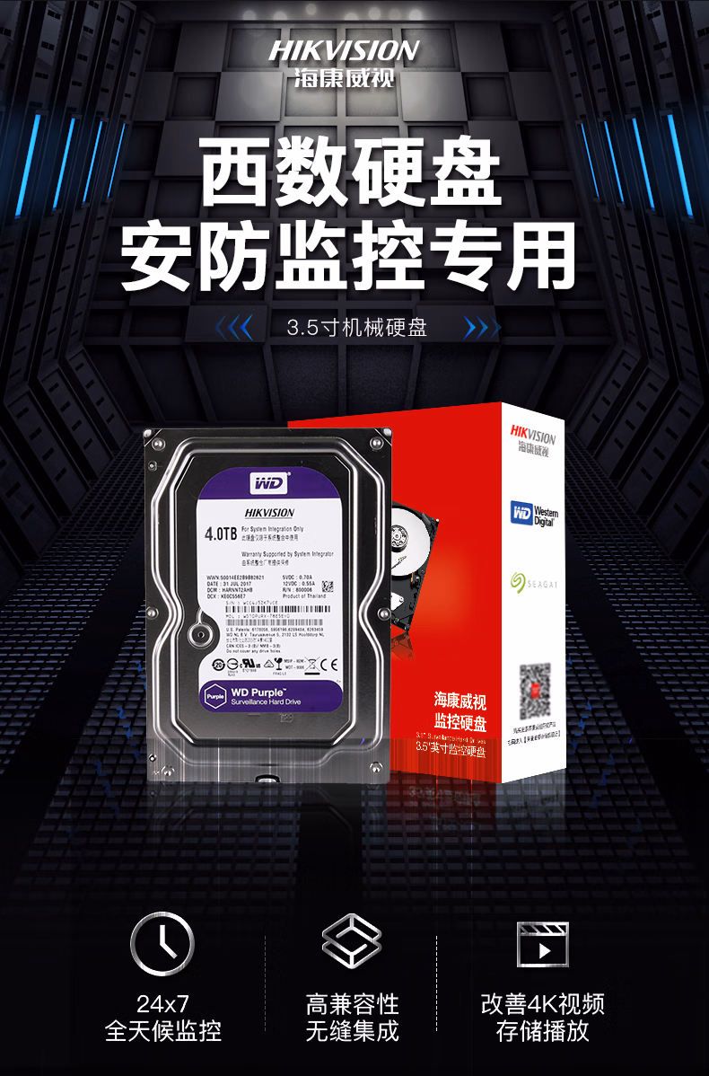 海康威视(HIKVISION) 8TB1机械WD紫盘监控硬盘