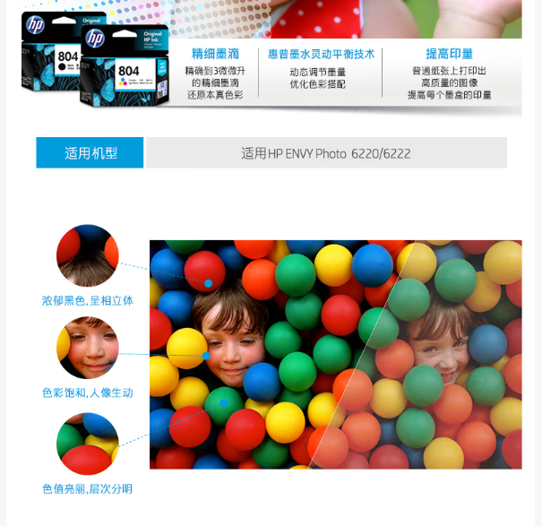 惠普(HP) 804 原装墨盒 适用hp 6220/6222/7120/7820/Tango打印机 大容量彩色墨盒