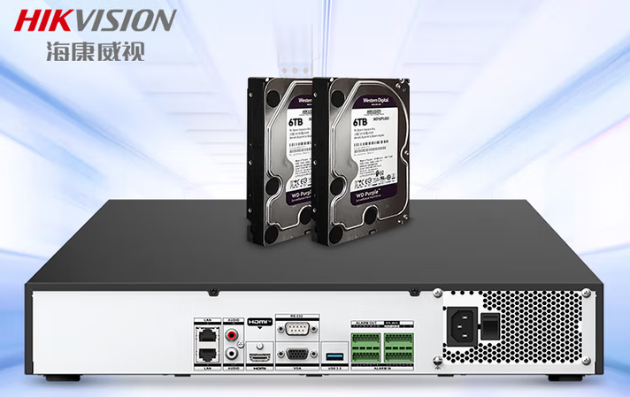 海康威视(HIKVISION) 网络硬盘录像机监控64路8盘位兼容8TNVR满配64个摄像头带2块6TB硬盘DS-8864N-R8