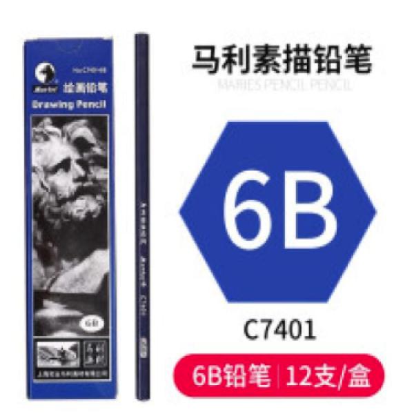 马利(Marie s) C7401- 2H HB B 2B 3B 4B 6B 7B 8B绘画铅笔12支装 素描绘画绘图考试六角木杆炭笔铅笔
