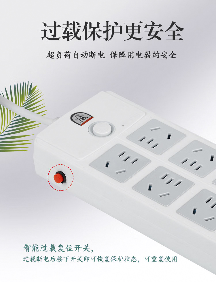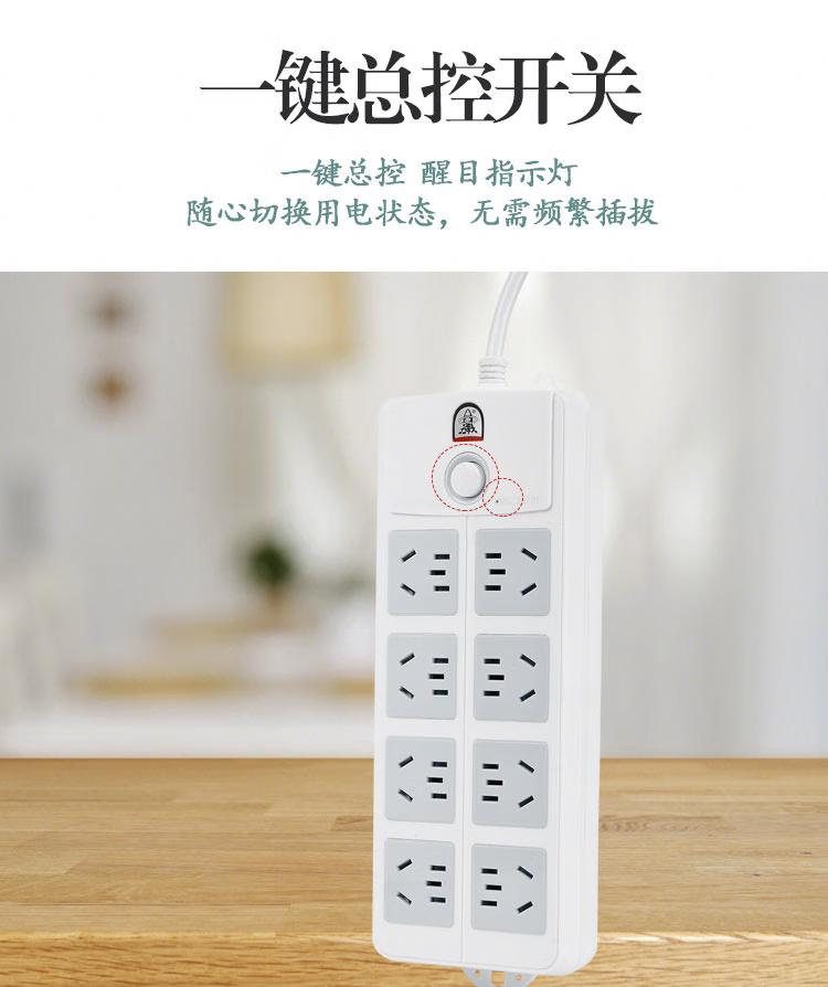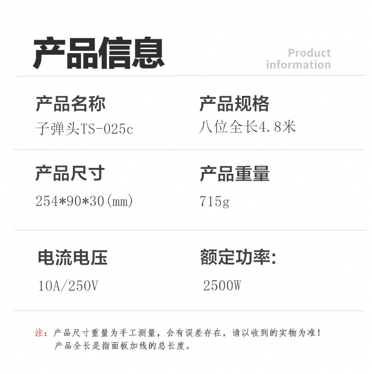 子弹头 新国标安全插座/插排/插线板/排插/接线板/拖线板延长线 8位总控全长4.8米TS-025c