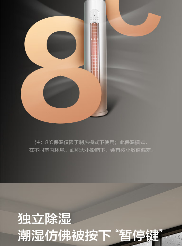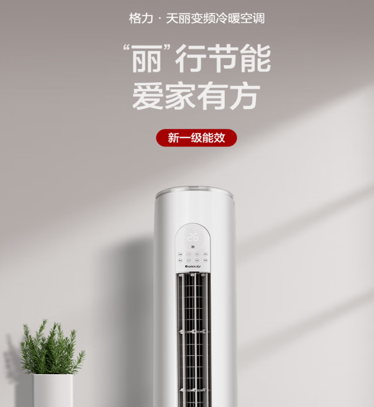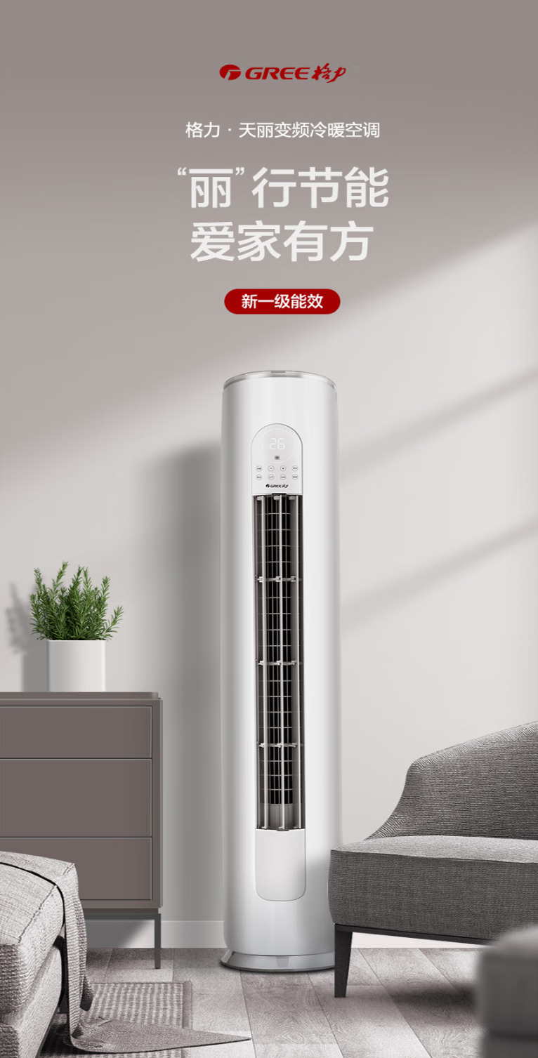 格力(GREE) 天丽 系列新能效一级能效 变频冷暖 自清洁 客厅圆柱空调立式柜机 3匹 一级能效 天丽KFR-72LW/(72530)FNhAm-B1