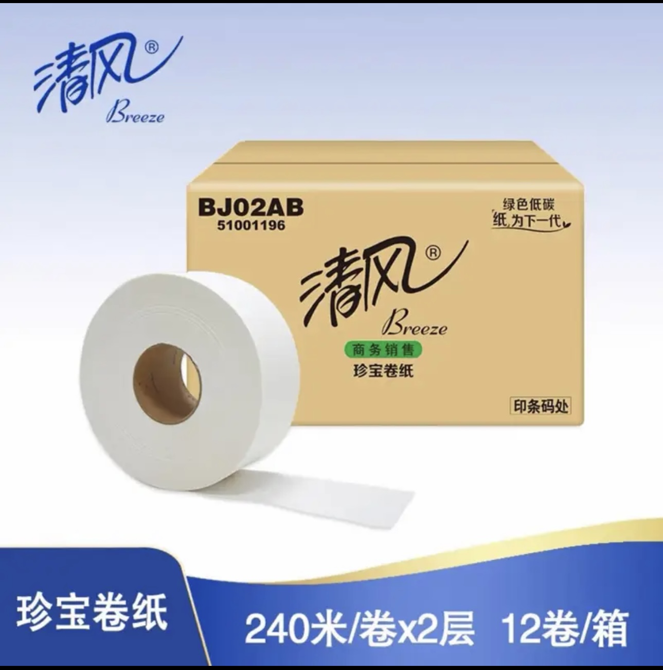 清风 BJ02AB大卷纸大盘纸双层240米12卷筒纸整箱