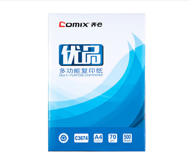 齐心(COMIX) 70g A4 复印纸 打印纸 A4纸 8包/箱 CB0074-8 学生复印社草稿纸 蓝齐心 1箱8包装工4000张