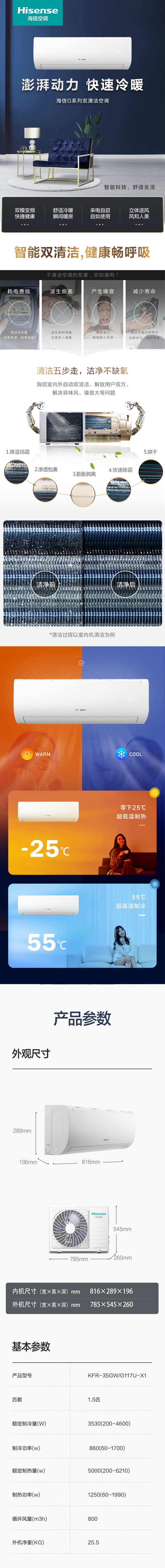 海信(Hisense) KFR-35GW/G117U-X1 大1.5匹 智能冷暖变频空调挂机 一级能效 标准安装