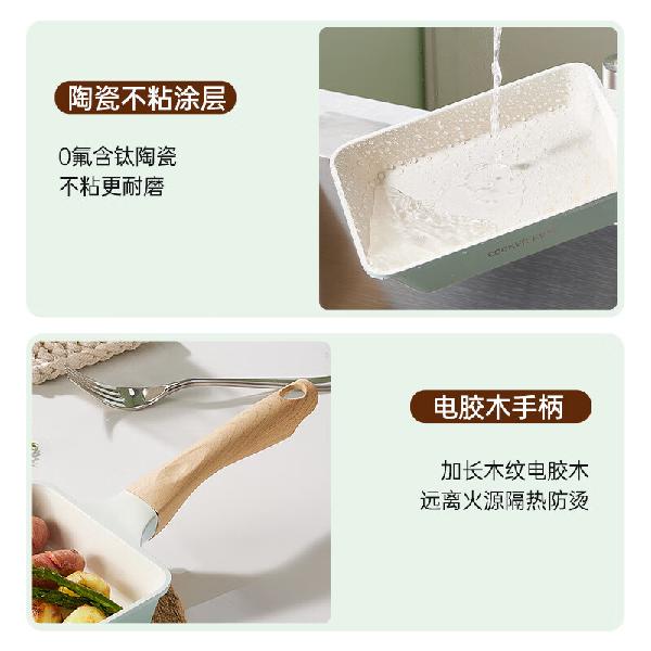炊大皇(COOKER KING) 玉子烧锅早餐锅平底陶瓷不粘锅厚蛋烧煎锅磁炉通用青瓷QC18YZS