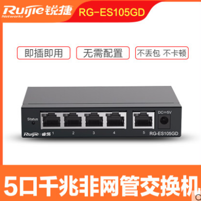 锐捷(RUIJIE) RG-ES105GD 5口千兆交换机铁壳非网管企业级交换器