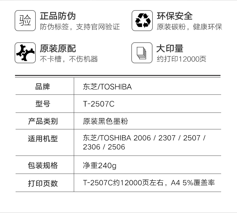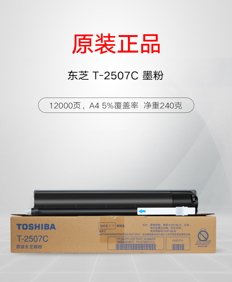 东芝(TOSHIBA) T-2507C原装碳粉盒 墨粉 高容量(适用于e-STUDIO2006/2306/2506/2307/2507)