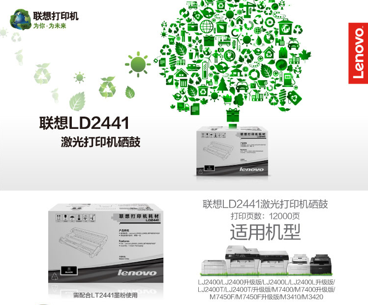 联想(Lenovo) LD2441 硒鼓适用LJ2400T LJ2400 M7400 M7450F M3410 M3420打印机